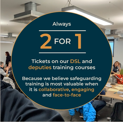 Because we believe in a collaborative approach to safeguarding, we encourage members of staff to train together where they can write safeguarding development plans which provide value long after the event is complete. To this end, we offer two-for-one tickets on all our DSL training courses. We deliver these in-person courses across the West Midlands and you can book a place on them by clicking on the buttons below: